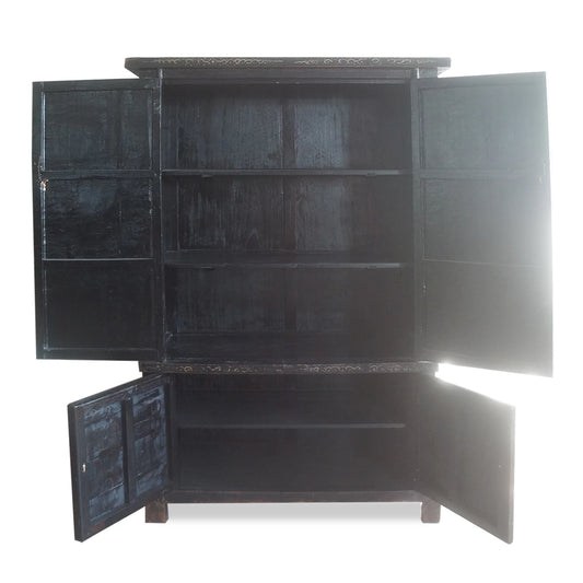 Armoire Coromandel Noire en Orme - Élégance et Authenticité, Shanxi 19ème
