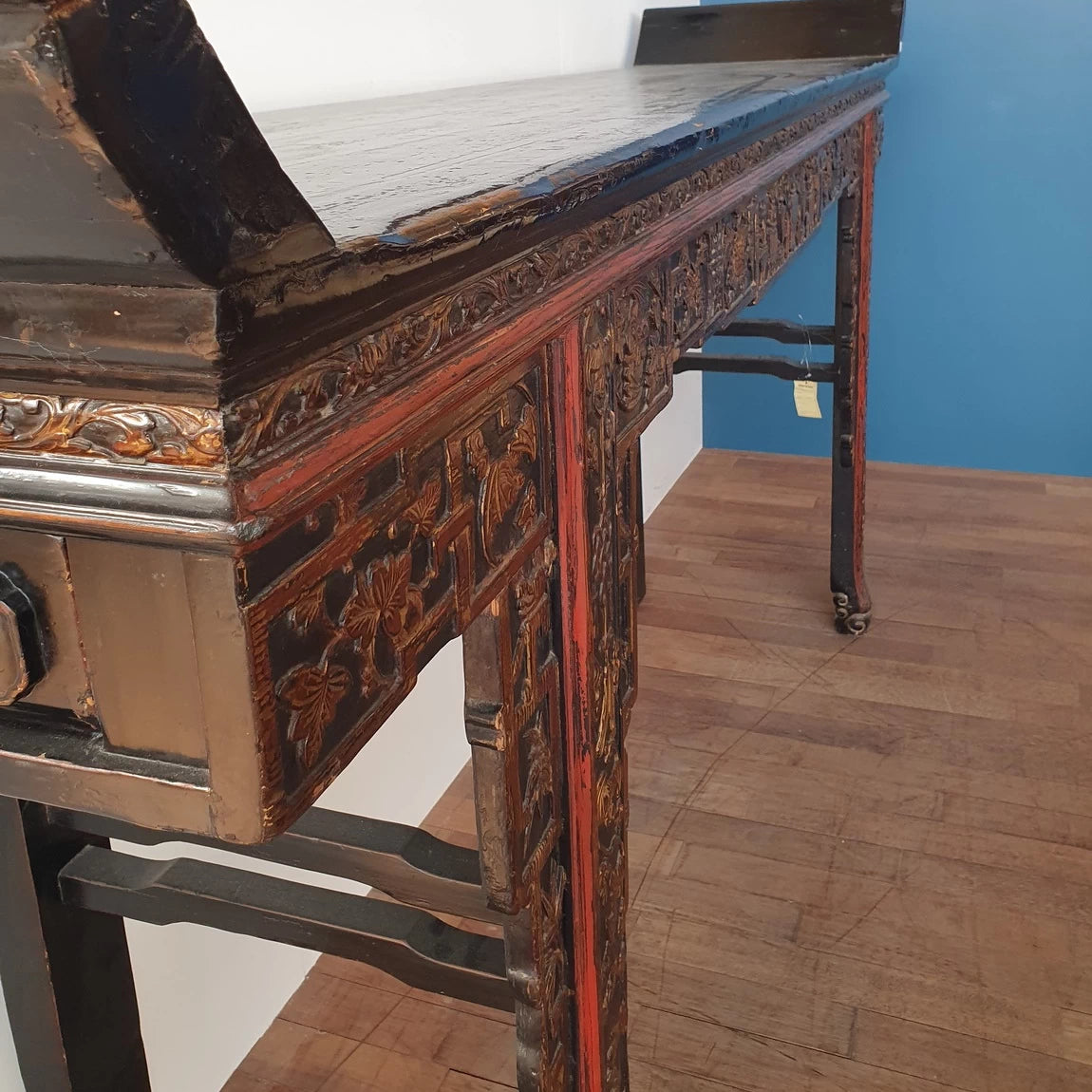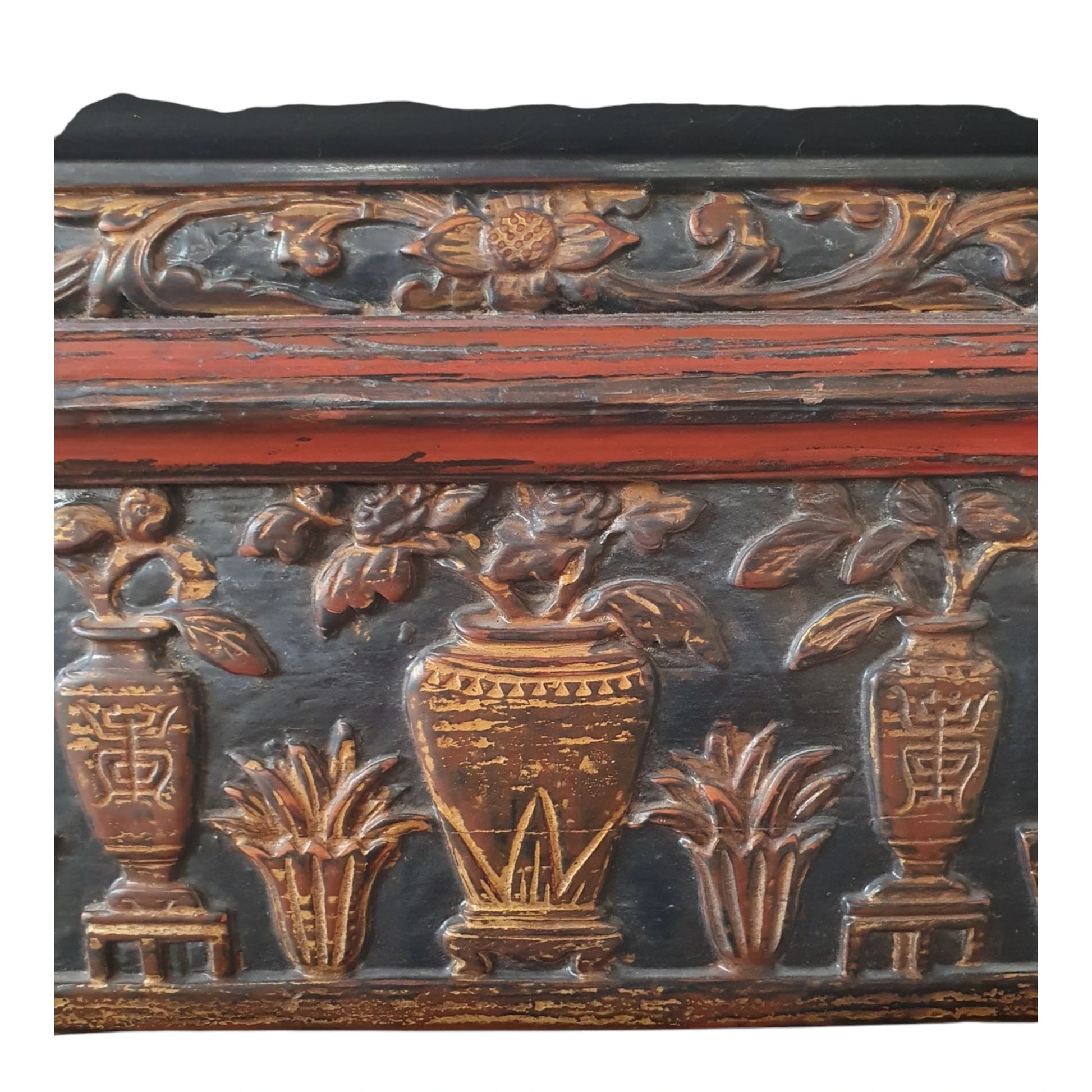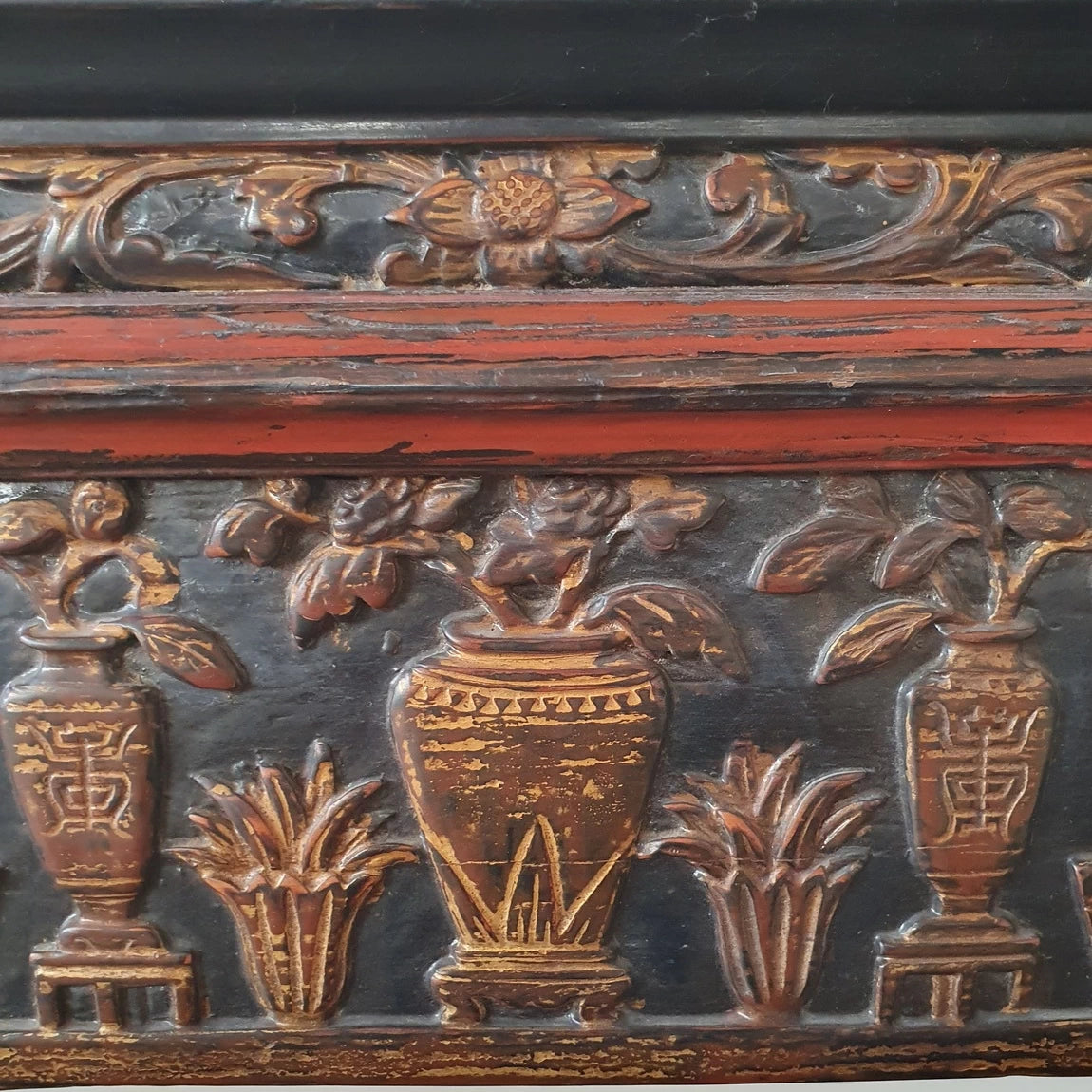 - Finition : Laque noire et rouge avec dorures anciennes partiellement patinées