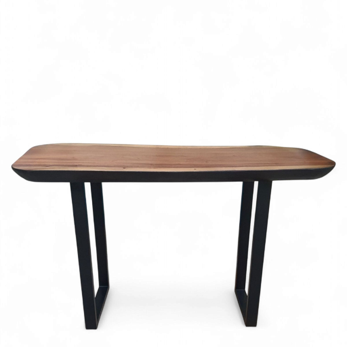 Chaque table snack en suar (Samanea Saman) est une pièce unique, taillée dans une tranche de bois massif à la forme libre et vivante. Montée sur piétement en métal noir, elle offre une silhouette contemporaine et chaleureuse, idéale en mange-debout ou table d'appoint haute.