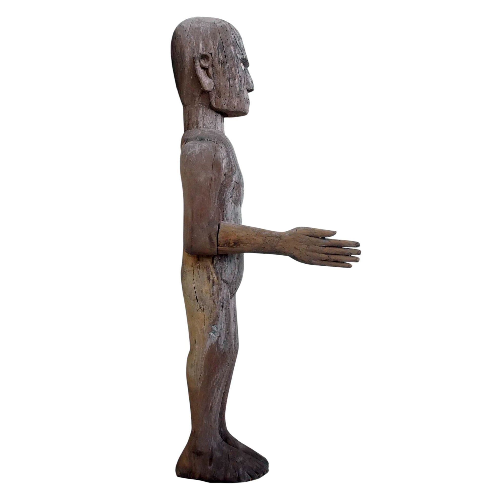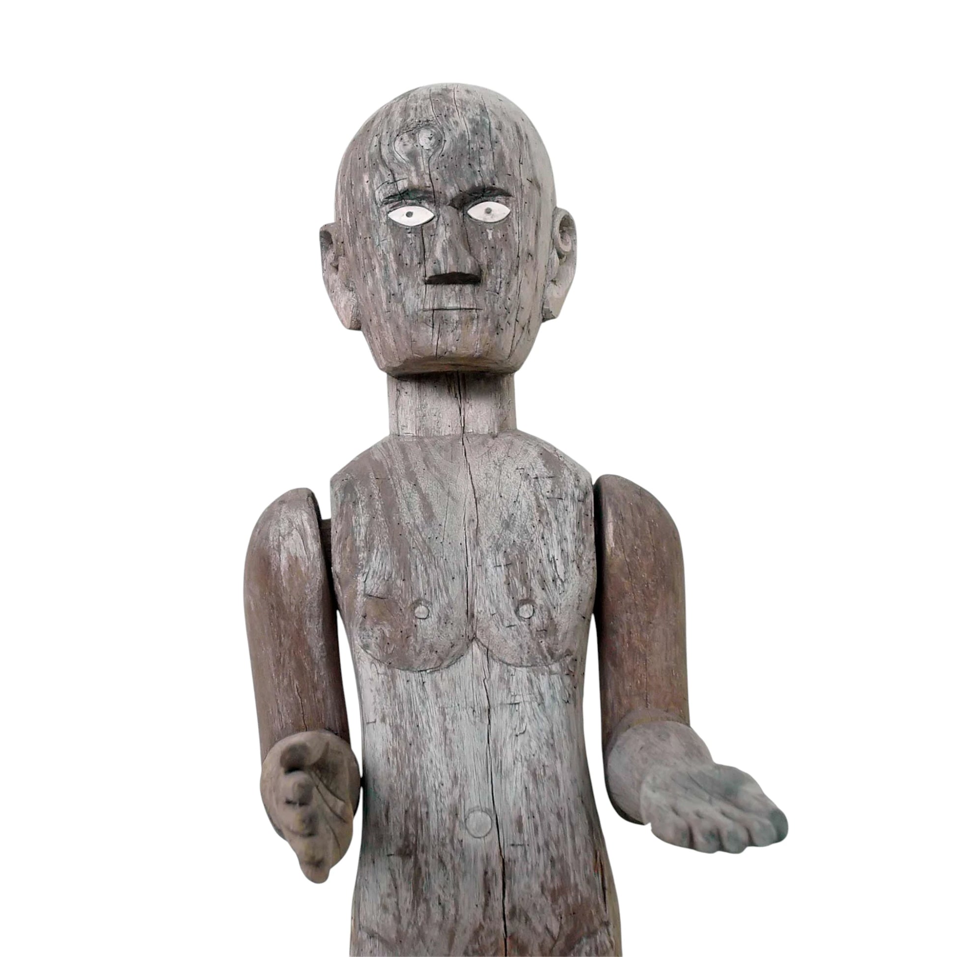 Sa présence incarne la continuité entre les vivants et les morts. Le travail artisanal et l'usure naturelle du bois soulignent l’authenticité de cette figure ancienne, qui devient dans un intérieur contemporain un objet de collection, puissant et mystérieux.