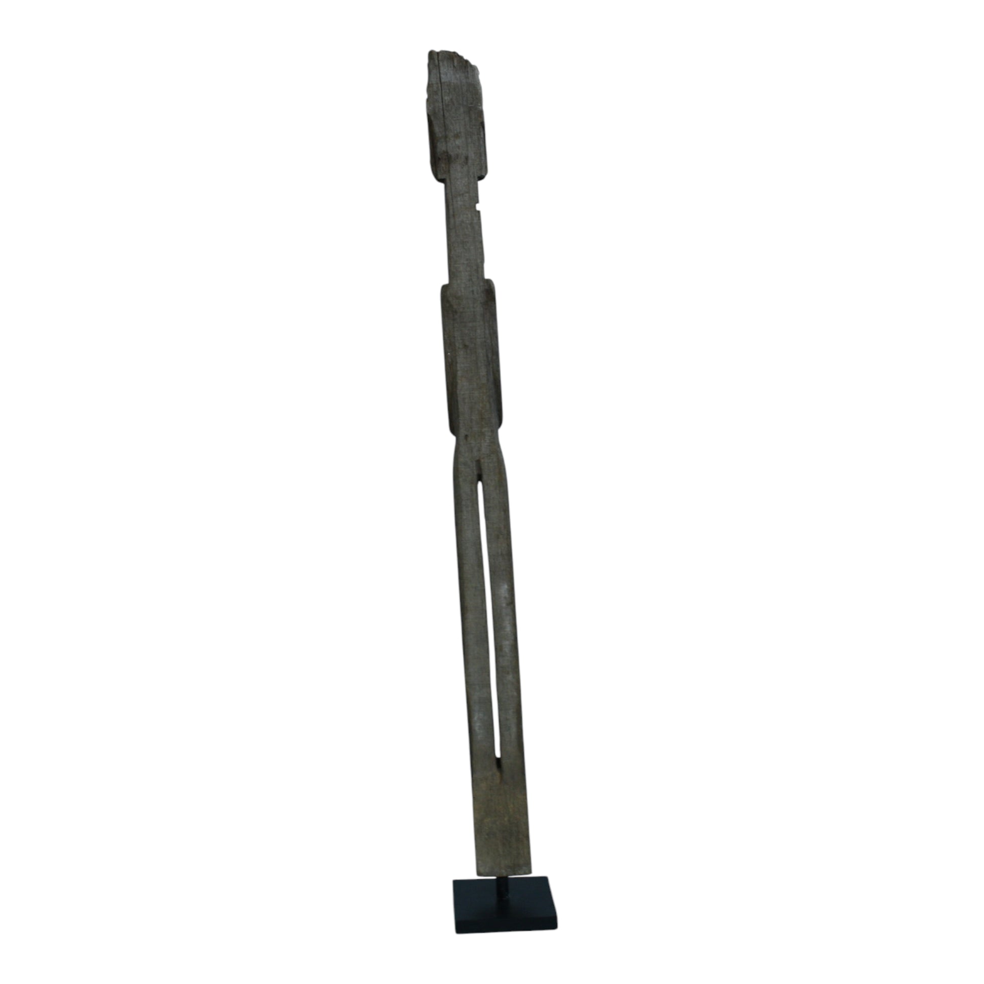 Sculpté dans un bois ancien et patiné, ce totem élancé incarne la figure ancestrale typique des villages de l’île de Sumba (Indonésie). Minimaliste, stylisé, vertical : il se distingue par sa silhouette longiligne, ses volumes géométriques et ses traits volontairement archaïques. Une pièce rituelle qui évoque la force tranquille des traditions animistes de cette région.