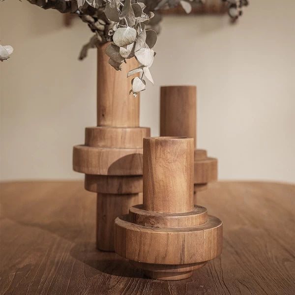 Ajoutez une touche naturelle et raffinée à votre intérieur avec ce vase en teck signé dBodhi. Ce design épuré et géométrique s'inscrit dans une esthétique contemporaine et chaleureuse, idéal pour compléter une décoration minimaliste ou organique. Chaque pièce est façonnée dans du teck durable, mettant en valeur les veines naturelles du bois.